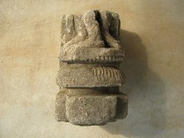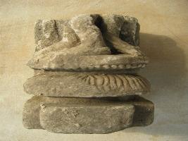 | Description / विवरण | The pedestal of the image has 3 steps of carvings. The lower one is flat and plain. Above it a grooved like linear marked petal is visible. The top is also same as the 2nd but in reverse manner. On the top the impression of three legs are visible. |
