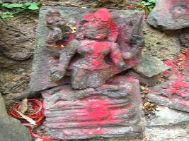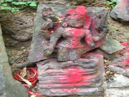 | Description / विवरण | It s a Parvati image being broken at the middle portion diagonally. It s a four armed deity. Its lower left hand is broken and its upper right hand is holding a lotus flower. It is kept on another broken lower part of a sculpture. |