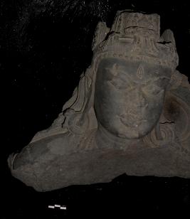 | Description / विवरण | The sculpture depicts only the head portion of Lord Vishnu with sharp eyes, prominent eyebows, blunt nose and parted lip. He is wearing Kiritamukuta, elongated ear rings and a Tilak Bindi adorned his forehead. |