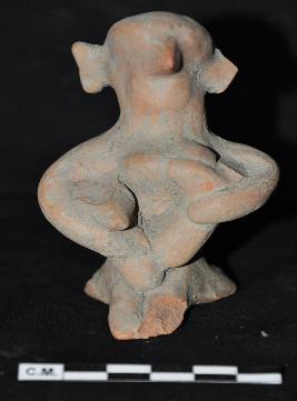 | Description / विवरण | The figure depicts a mother and child in standing posture and holding her babies in two arms. The figure is having round eyes, broad ears. An her face resembles like bird. |