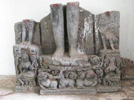| Description / विवरण | Broken image of Trithankara is seen from knee portion downwards on double petalled lotus. |