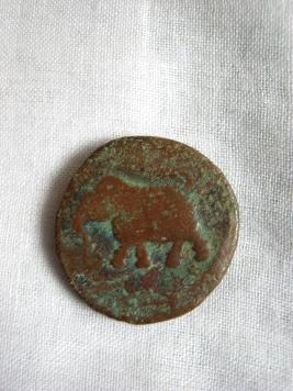 | Description / विवरण | It s a copper coin of Tipusultan period . On its obverse an elephant is seen on reverse a script is seen. |