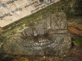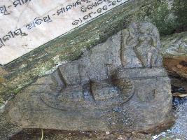 | Description / विवरण | Lower part of an image of deity. Broken legs or feet on a pelestal. A lady attendent is seen. |