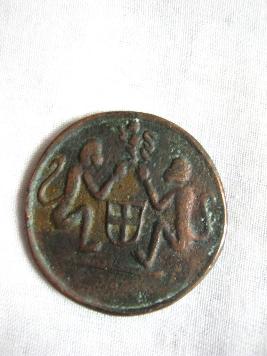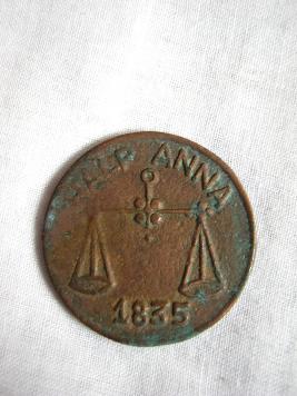 | Description / विवरण | A Hanuman paisa. On the obverse two monkeys face each other. On its reverse a measuring instrument is seen. |