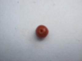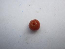 | Description / विवरण | Small orange coloured circular ear bead. Drilled in center from both sides. Wear and tear marks noticed on both hole ends. |