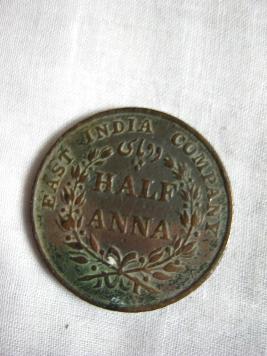 | Description / विवरण | It s a Half Anna East India company coin . On its obverse two lions holding two flags . At the top a tiny lion is noticed at the top. |