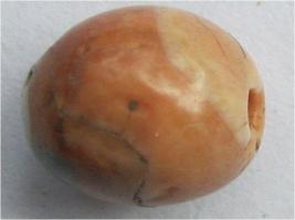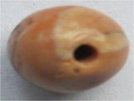 | Description / विवरण | Circular slightly flattish agate bead having white, black and ashy colour bands and patches. The bands are wavy . Weather beten and eroded. Wear and tear marks prove its long use |