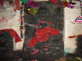 | Description / विवरण | Goddess standing. Kailash like thing along head. |