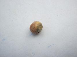 | Description / विवरण | Rough shaped white colour agate bead drilled from both the sides. A shallow depression is noticed on its surface. Wear and tear marks on hole face proves its use. |