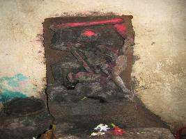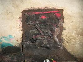 | Description / विवरण | Four armed Durga standing on one foot on back of lion. Right raised leg foot on back of buffalo demon. |