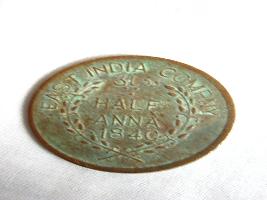| Description / विवरण | On obverse Srabana kumar is noticed with his father and mother in a carrier basket. On the reverse Half Anna is written . |