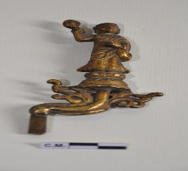 | Description / विवरण | Part of a Sculpture envisaging miniature image of Buddha with a bowl and a lotus in his hands.He is standing on a lotus pedestal. |