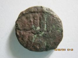 | Description / विवरण | Roughly circular copper coin, symbols are cast engraned through a punching devise once hot metal. In its obverse on U shaped mark, one vertical line also notice inside it. Another vertical line on its left side. Tora oblique mark notice below this in lower right corner. On its riverside four vertical line stands in a raw and one horizontal line notice below the vertical line touching the four line. |