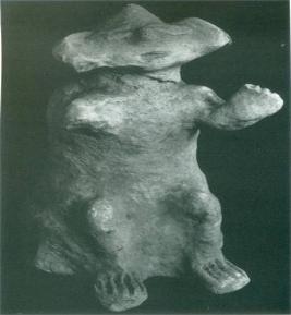 | Description / विवरण | The figure set on a wheel-turned base. The seated figure with an upturned face. The hands and feet resemble claws like animal. The figure seated on a low stool with the face turned up and bears close. |