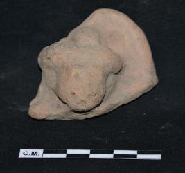 | Description / विवरण | The terracotta plaque depicts a male head with totally eroded face and having trefoil coiffure on head. |