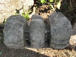 | Description / विवरण | The stone blockis bears the mouldings on one end. Three mouldings are visible. Among them two side mouldings are flat and central one is rounded. Back side is plain. Two groove marks are visible on rear side. |