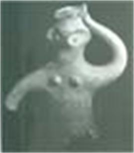 | Description / विवरण | A archaic hand-modelled Mother Goddess, figurine has been depicted as raising one of its hand to touch its head. The eyes have been rendered with the help of clay pellets. There is hardly any ornamentation in this figure. |