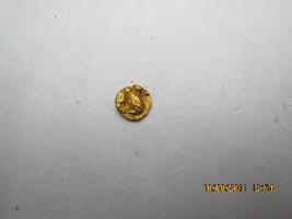 | Description / विवरण | Tinny gold coin, cast n die, on its obverse a couchant bull facing right. On reverse side two Telugu numerals given |