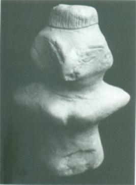 | Description / विवरण | The present specimen is a depiction of a mother goddess with pinched face. The face resembles a bird and eyes are etched out boldly. The rectangular headdress too has been decorated with etched lines. |