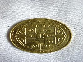 A Yellow coloured Nepal coin. |
