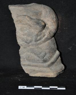| Description / विवरण | The fragment of human figurine depicts Baby Ganeshain lap of her mother Devi Durga in seated posture with folded legs. |
