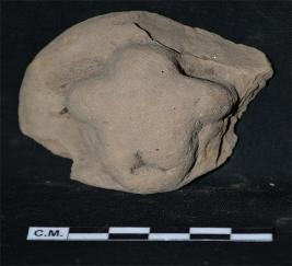 | Description / विवरण | The fragment of terracotta plaque depicts a female head with trefoil coiffure on her head. |