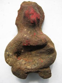 | Description / विवरण | The minatur terreotta fig is hand mode and broken from leg down wards hands are placed other on the waist leval crlode breast design is there where the face is pinched. |