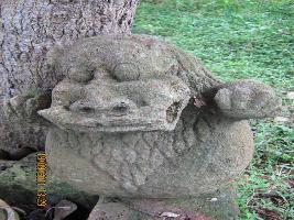 | Description / विवरण | Front portion of a pouncing lion found in a broken and eroded condition. Projecting chest, having manes on it. Both front legs are raising Eye balls are bulging. Flat nose, mustache is broken on left side. Both ears are missing. |