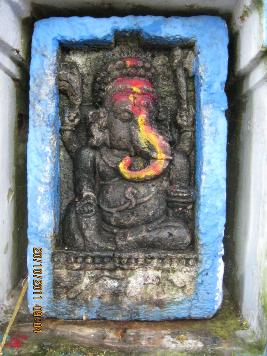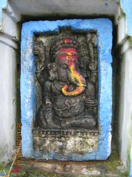 | Description / विवरण | Four handed Ganesha. Snake seen below. Flower in most upper hand. |