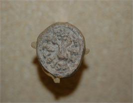 | Description / विवरण | A rounds shaped seal depicts symbols and script. |