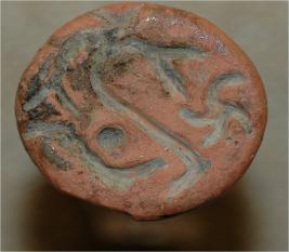 | Description / विवरण | A rounds shaped seal depicts symbols. |