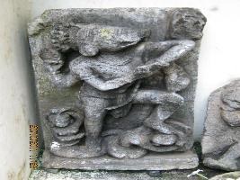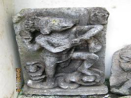 | Description / विवरण | 4 handed Baraha with earth on his left upper arm. He is trampling a serpent having human face. Another female figure is seen. |