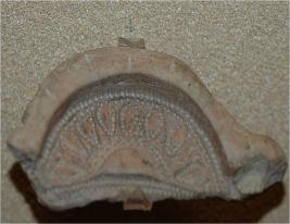 | Description / विवरण | Fragment of a terracotta mould depicts floral and beaded design in the inner surface. |