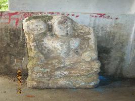 | Description / विवरण | Surya seated on a double petalled lotus in cross legged position holds full blow lotus stalks in his both hands. Both hands rest on thaigh, face is defaced. Only earing is noticed. Lime washed. One hand is missing. |