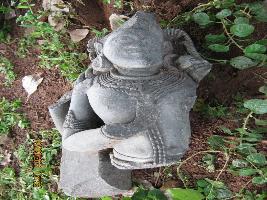 | Description / विवरण | A male figure having a third eye, heavy ear ring, necklace, scared thread, girdle, bracelet. The principal right hand is noticed without palm, alongwith another right hand without palm. Crown is broken. |