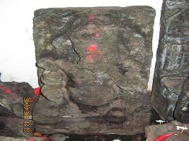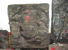 | Description / विवरण | Ganesh seated on a lotous ardha paryencar bellow lotus mousa left turn trunk plaeing on cup of sweet hold ketaki hower just neak lace in back a circular hallow lower right hand rossing lower left hand buttle axe. |