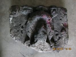 | Description / विवरण | The broken image of a parsvanth available from the bust above along with the serpent hood. Carved slab, same stone is broken. |
