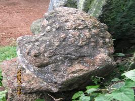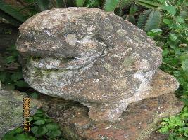 | Description / विवरण | Fore part of a lion having bulging eye, flat nose, projected tongue and mustache with both ears are broken mans are depicted on chest and back neck. Only a portion of left leg is noticed. |