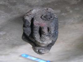 | Description / विवरण | Broken hand in barada mudra having a lotus design on the palm. From wrist upward the sculpture is missing. |