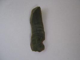| Description / विवरण | The blade has no even surface. Both ends are thick and the middle portion is thin 0.2mm.One tip is looking like a burin whereas the other has a very sharp end due to the uncontrolled force applied to it.Reverse side has a small positive bulb of precussion along with the ripples. |