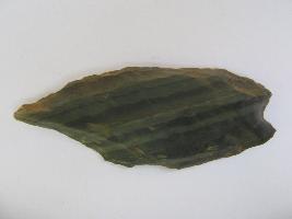 | Description / विवरण | The tool is made of a natural flake .The obverse side has 2 long fluting impressions and many small fluting marks.The top portion is sharpened by removing a large flake. The sharpened left side and right side have minor flakings. |