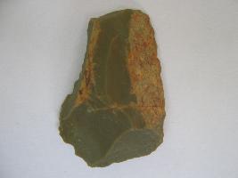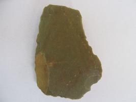 | Description / विवरण | The knife has only one sharp lateral edge and has a sharp but end.On obverse side the sharp edge is along with the original cortex and fluting marks are visible along with small flaking impressions. Reverse side is plain and has a part of cortex and along side sharp lateral edge. |