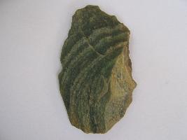 | Description / विवरण | The flake has many ripple marks appearing as fish scales.The obverse side has a part of original cortex and a mark of large flaking. Reverse side has undulated surface due to the banded quality of the stone No side end having a sharp edge. |