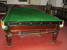 | Description / विवरण | Eight legged billiard board has legs shaped as hexagonal in middle, circular at base and above hexagonal design. Pot like circular design is introduced above the hexagonal position. Above it is rectangular over lapping an arch design. Above this the board is fixed with bolts. Having six holes and ball arrestar of brass and leather. It is a board with green colour stripes. Brass hooks are attached for keeping of the sticks in every direction. Green colour velvet covers the board. The ivory plaque is missing in this board. |