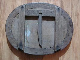 Metal plaque with wooden frame |