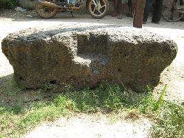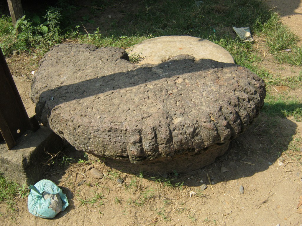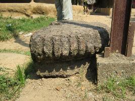 Fragment of amalaka once a part of a temple, grove of iron is visible. Used for joint. In center a square grove is noticed for in sertion of amalaka.