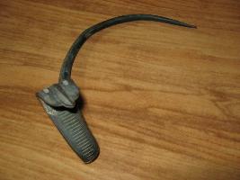 | Description / विवरण | A snake made from horn with a raised hood. Mouth is cut as open. Above the hood two oblong marks are visible. A mid rib is noticed in the middle of hood. Horizontal mark is depicted in the front side of neck. Body is bent from neck. Shape is haif circular. |