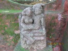 | Description / विवरण | The female figure is seated in lalitasana on a dubble petalled lotus. She has ornaments like necklace, bangles and anklets. On her left thigh a male figure is found seated resting his leg on her right thigh. Female figure holds the male at left shoulder. |