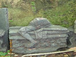 | Description / विवरण | Lower portion deity from waist to lower, seated a throne in lalitasana right leg pendant, broken right palm showing varada mudra. Below in right a kneeling female devotee, a lion poor execution ornament is anklet. |