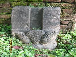 | Description / विवरण | A stone slab middle is cut as a narrow niche, below it a ornate carving like a top of ornate lion. |